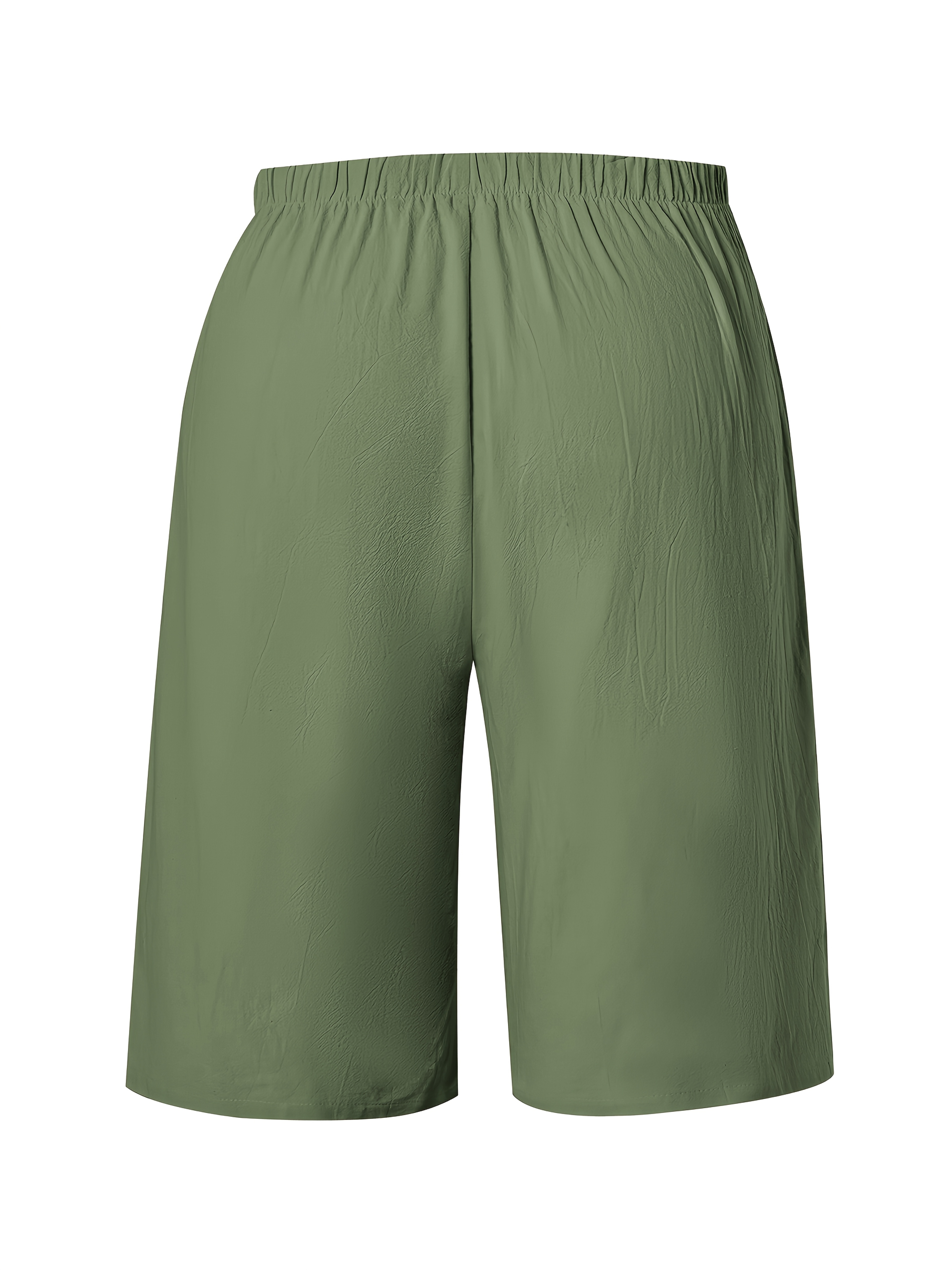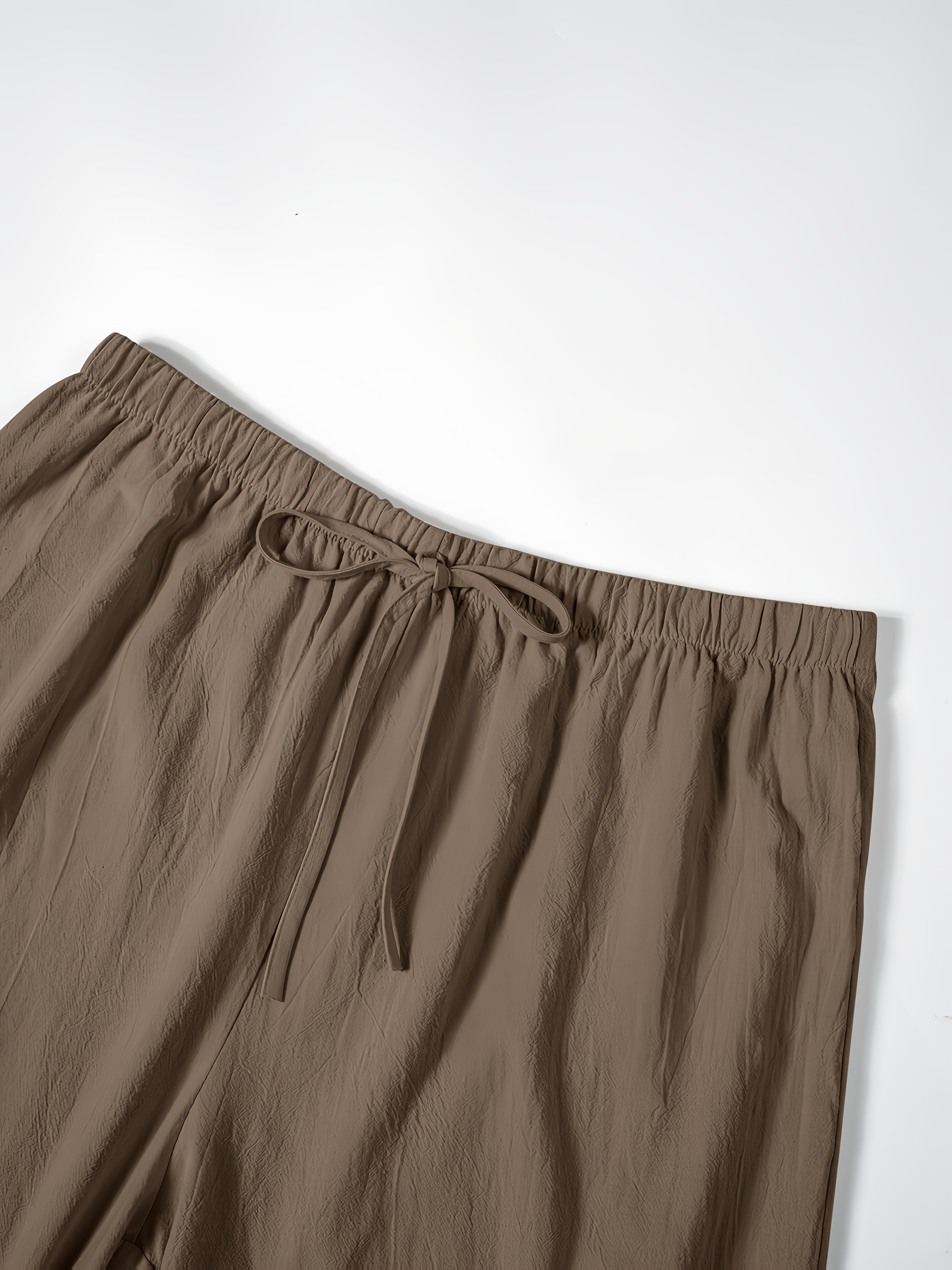 1pc Women'S Casual Polyester Shorts, Solid Color, All-Season, Woven Fabric, with Fake Drawstring Detail