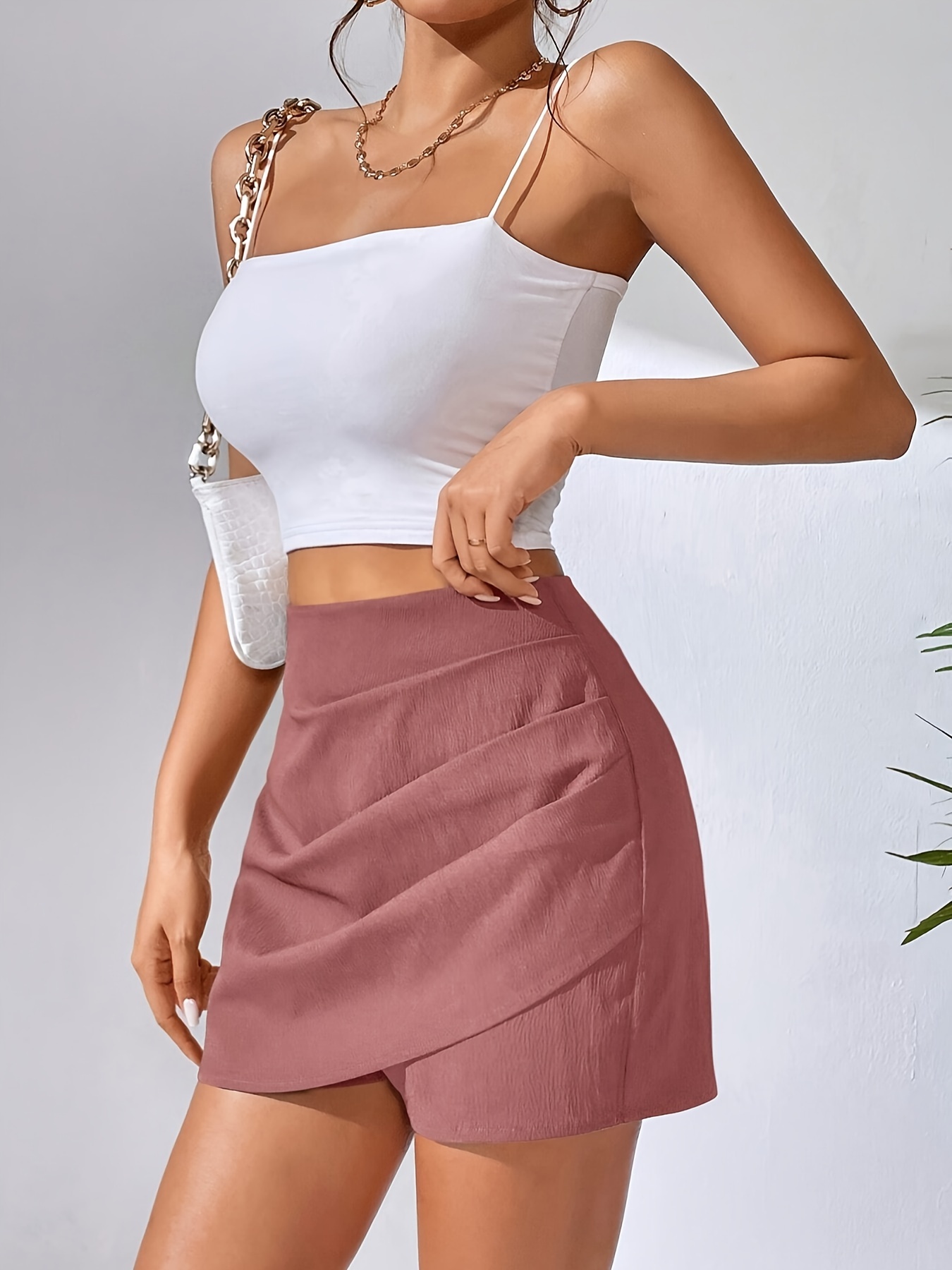 Stylish Ruched High Waist Skort - Flattering, Flowy, and Comfortable Design for Spring and Summer - Elegant Women's Clothing for Outdoor Activities