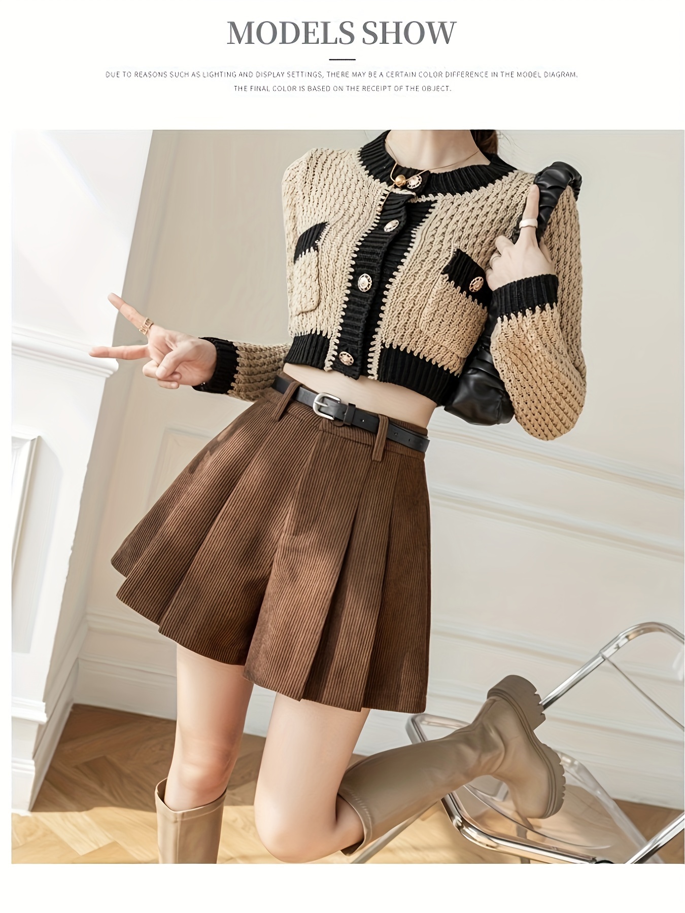 Chic Women's High-Waist Pleated Corduroy Shorts - Durable, Non-Elastic, Perfect for Casual All-Season Wear